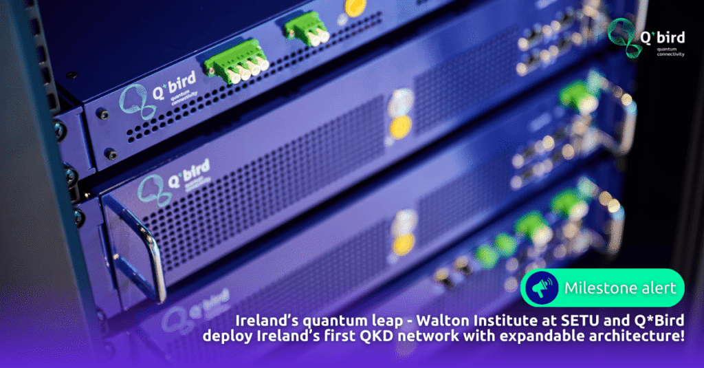 With this milestone deployment, Q*Bird and Walton Institute at SETU, reinforce Ireland’s leadership in quantum secure communication and accelerate the transition from quantum research to quantum resilient infrastructure. The network delivers a future-ready and scalable foundation for expanding Ireland’s quantum connectivity, enabling new research, education and critical infrastructure partners to join the secure, interoperable ecosystem!